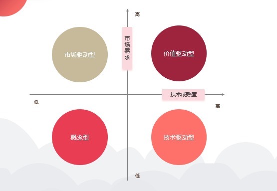 为了更直观地理解,我们根据技术成熟度和市场需求度,来构建一个坐标系。以不同象限来评估不同方向的项目定位。